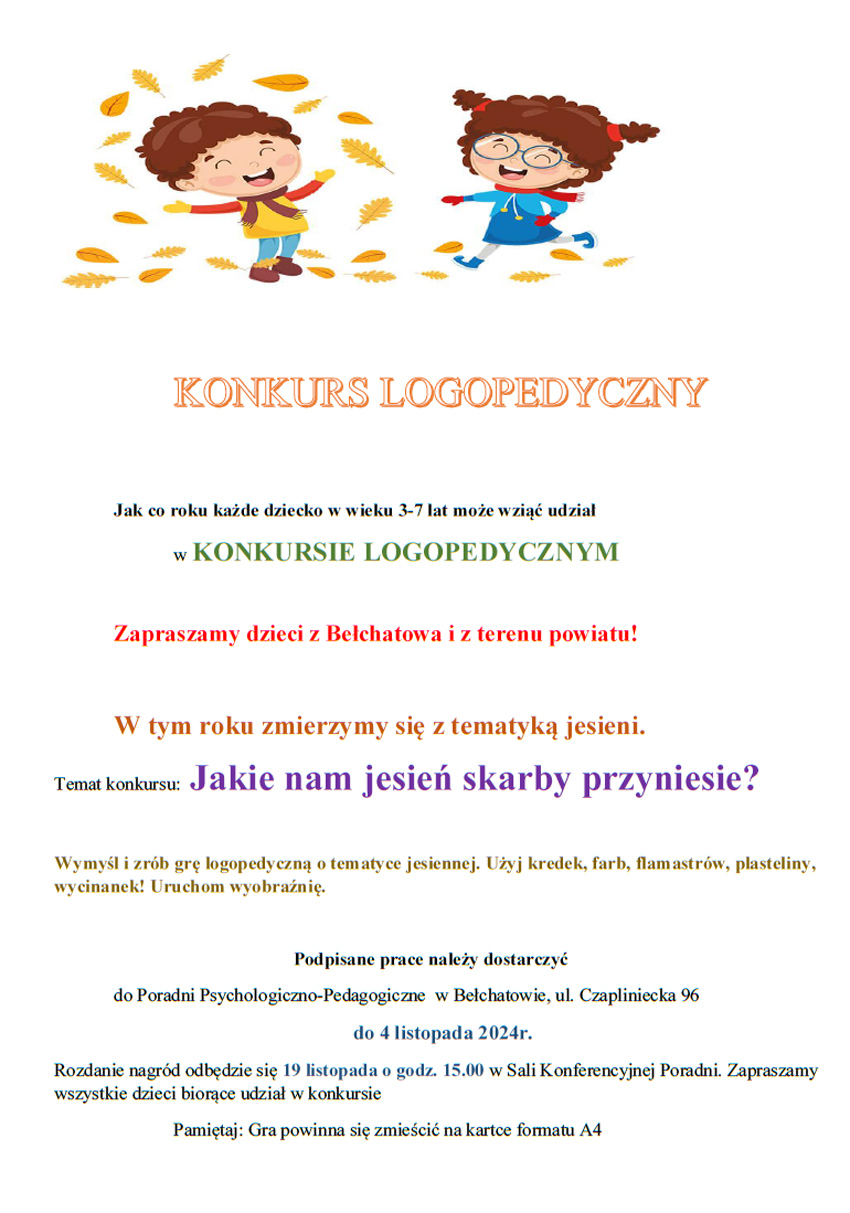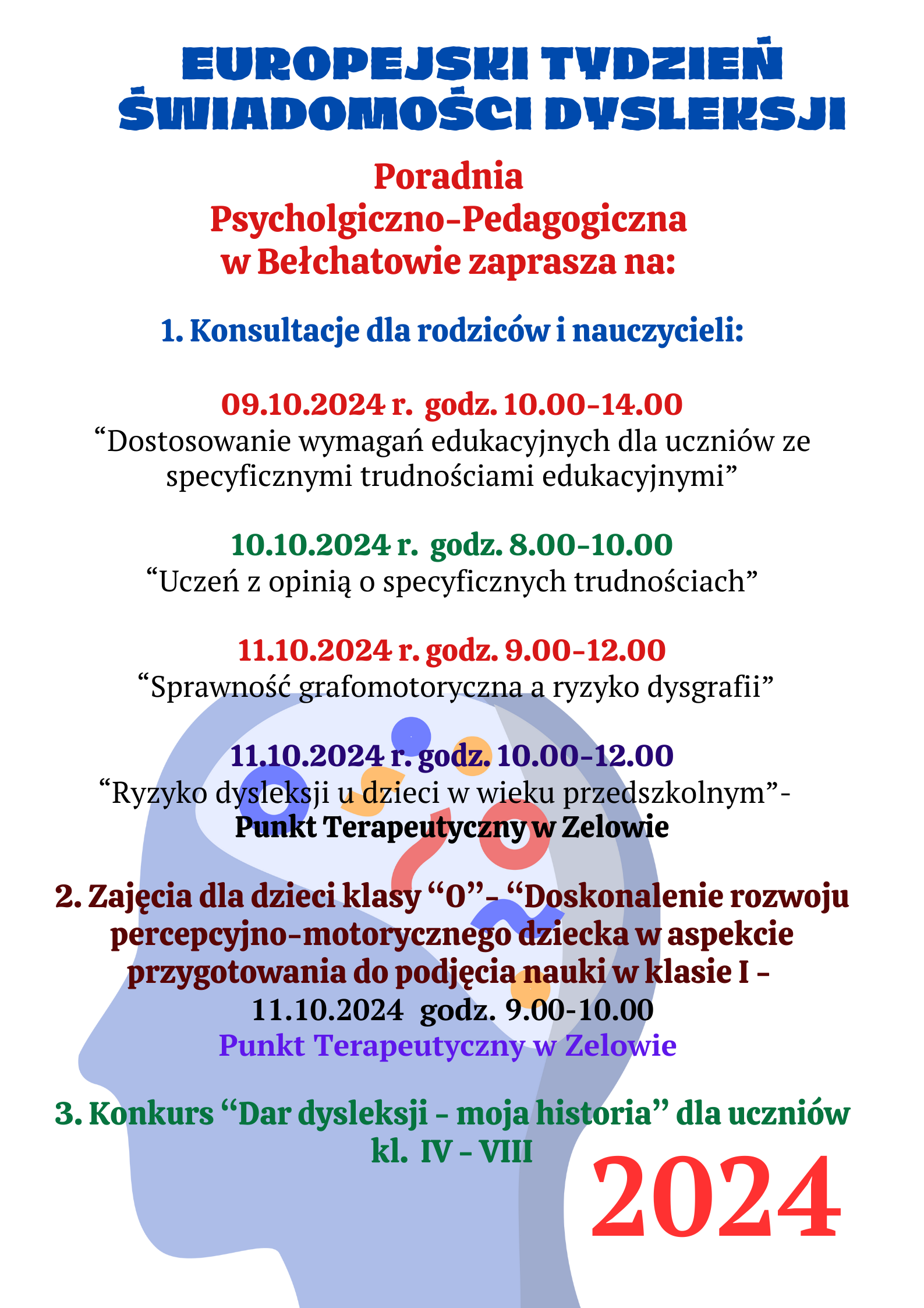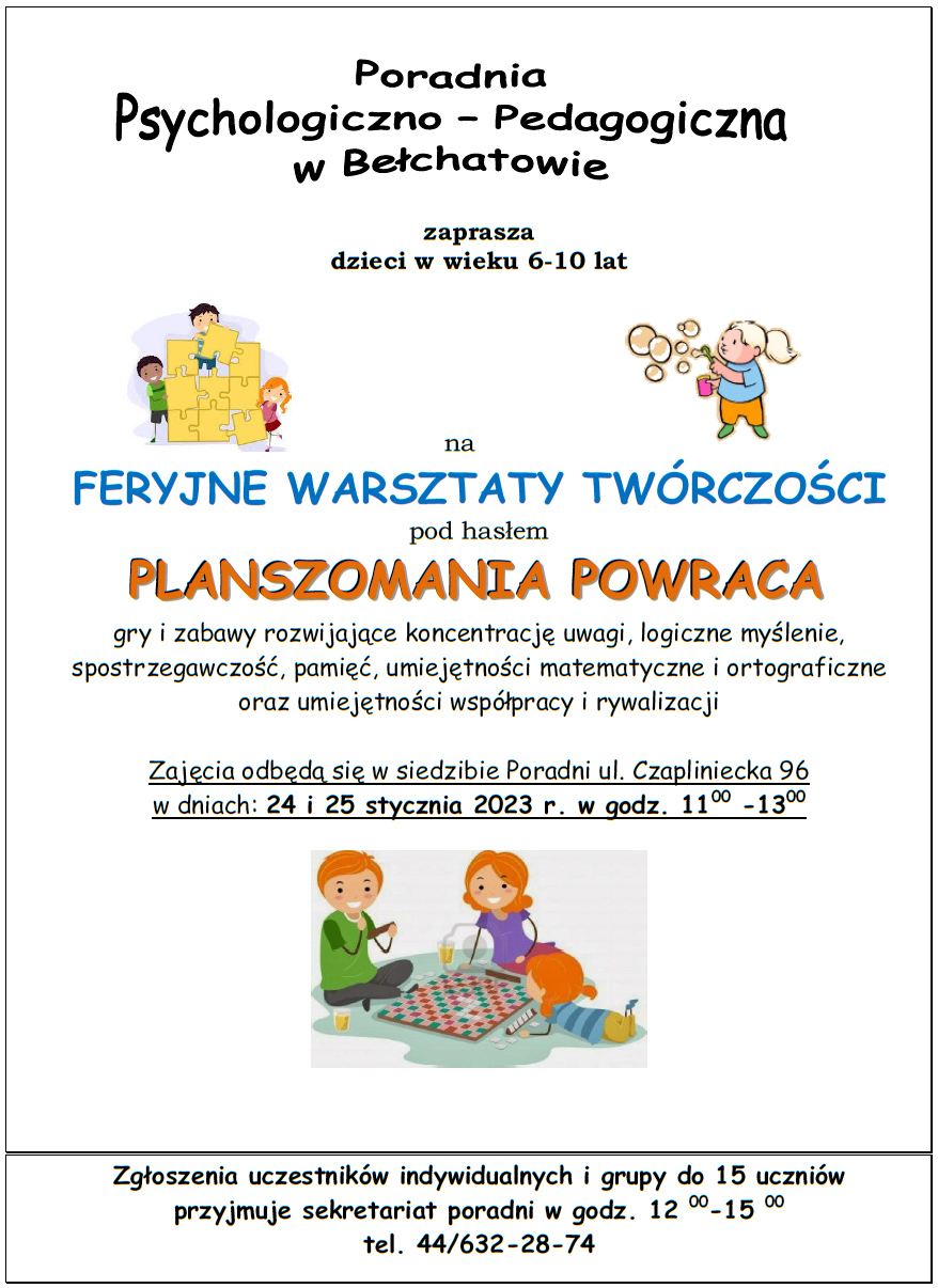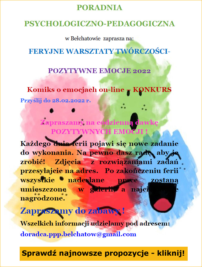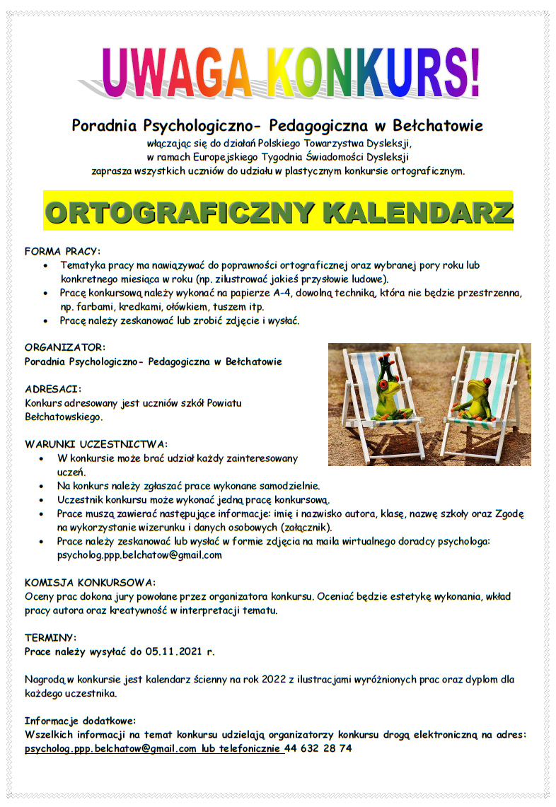 Organizator: Poradnia Psychologiczno-Pedagogiczna , 97-400 Bełchatów, Czapliniecka 96, tel. 44-6322874.