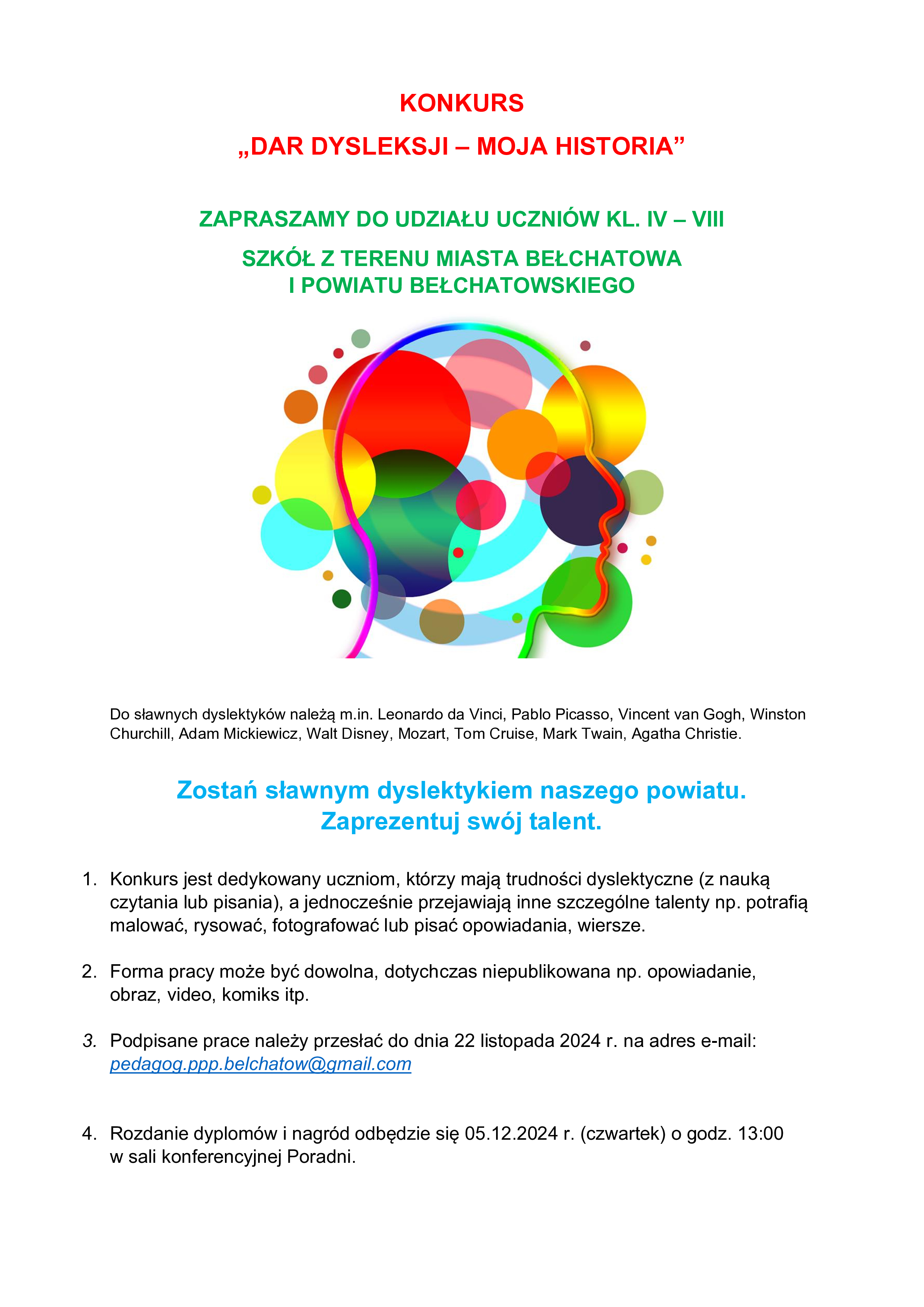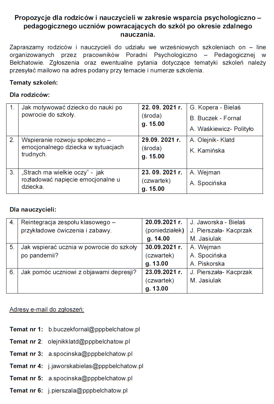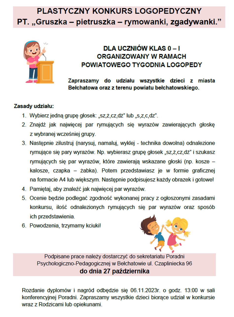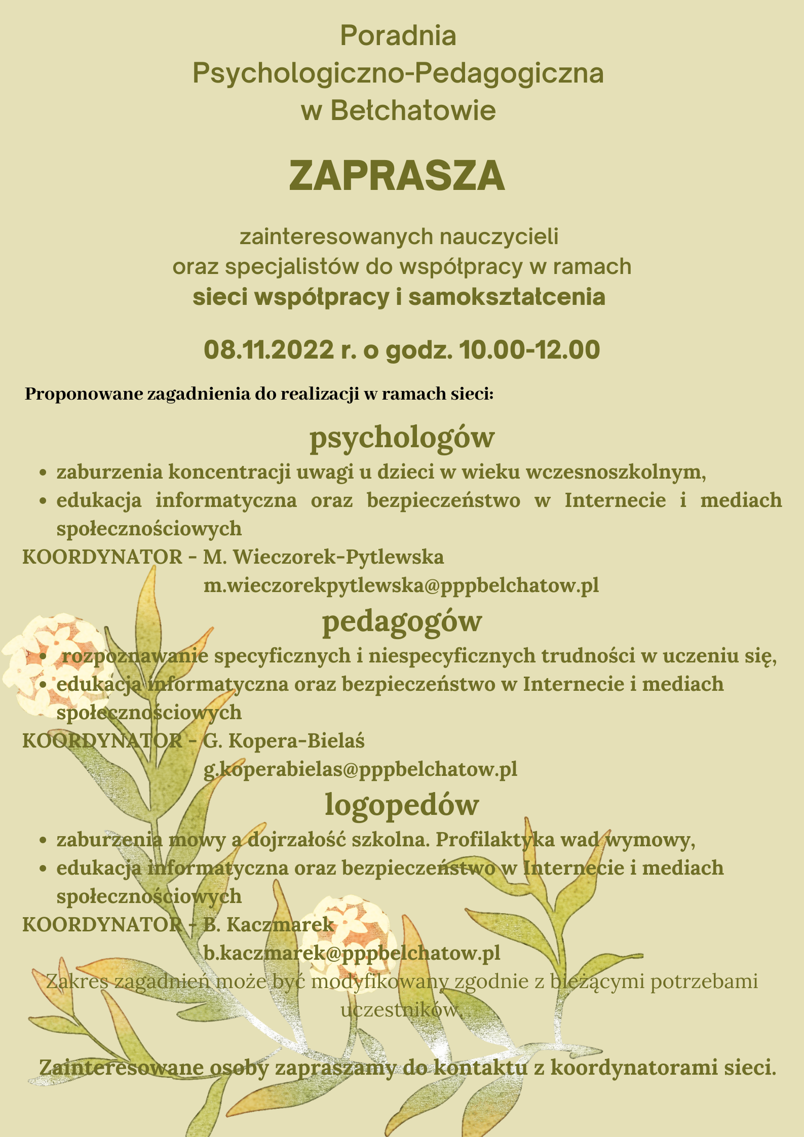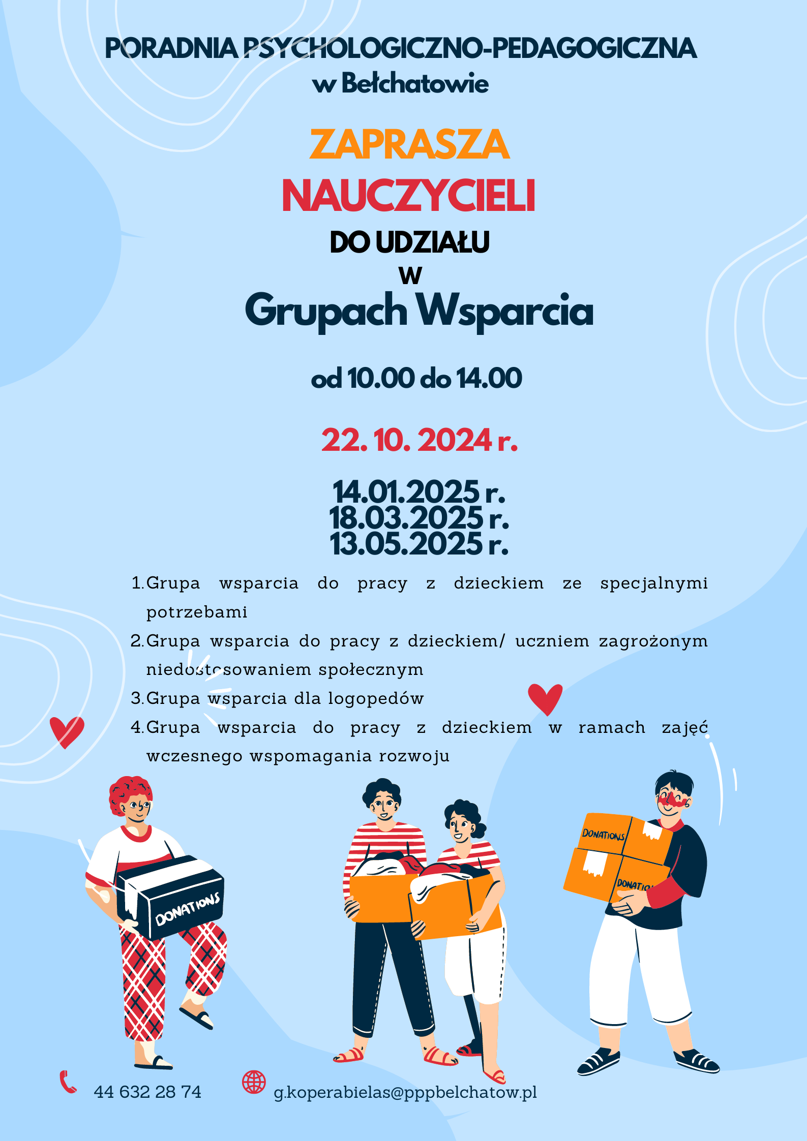 Organizator: Poradnia Psychologiczno-Pedagogiczna , 97-400 Bełchatów, Czapliniecka 96, tel. 44-6322874.