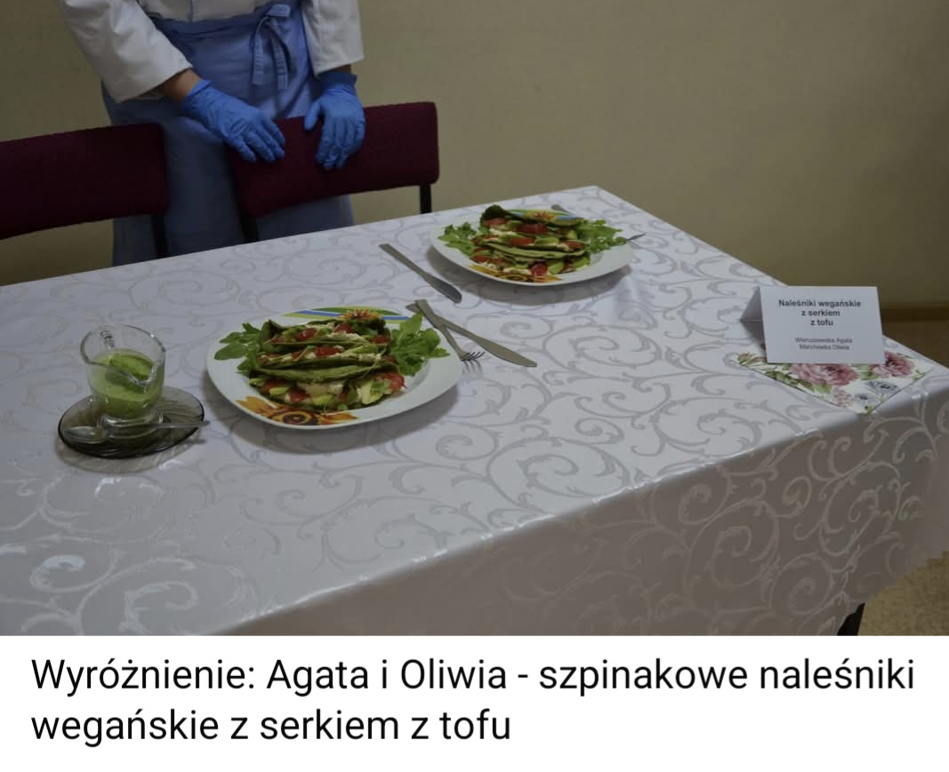 Dodatkowe wyróżnienie za innowacyjne i odważne podejście kulinarne otrzymały Agata i Oliwia za przygotowanie szpinakowych, wegańskich naleśników z serkiem z tofu oraz dodatkiem awokado i pomidorów, podanych z sosem z rukoli, szpinaku i jogurtu.